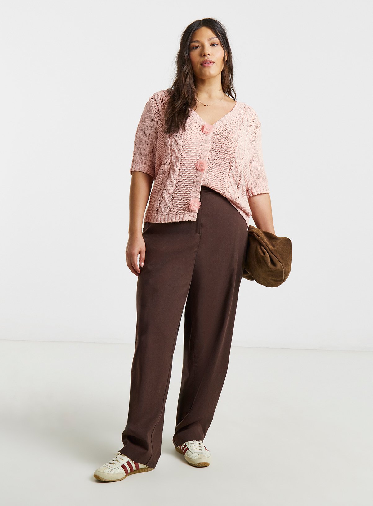 For a chic and functional touch, try our cropped cardigans. They’re great for layering over workwear like pencil skirts or trousers and offer an elegant yet comfortable look. And add our ribbed cardigans to your wardrobe for a stunning smart-casual look. Their textured design pairs beautifully with tailored trousers and heels, making them an ideal choice for a stylish work outfit.