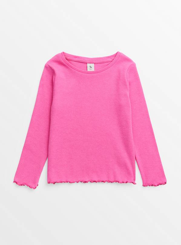 Bright Pink Lettuce Hem Ribbed Long Sleeve Top 5-6 years