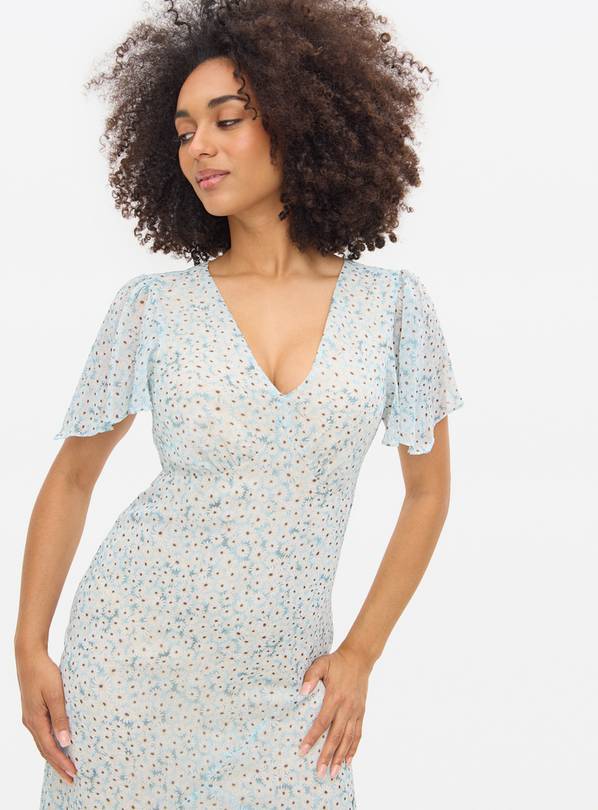 Blue Floral Print Semi-Sheer Midi Tea Dress 22