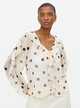 Introduce our new season polka dot blouse to your capsule. Designed with ruffle detailing and a polka dot design. Features a flattering v-neckline and frill collar. Partner with wide leg denim jeans for sophisticated style.