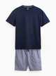 Navy Pinstriped Woven Jersey Shortie Pyjamas XXL