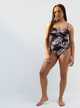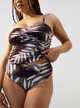 Dark Purple Palm Leaf Print Full Brief Tankini Bottoms 16