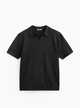Black Textured Pointelle Revere Neck Polo Shirt XXL