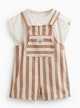 Brown Stripe Print Denim Dungarees & Bodysuit Set 6-9 months