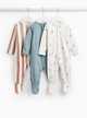 Numbers & Stripe Print Sleepsuits 3 Pack Up to 1 mth