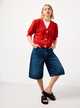 Red Crochet Style Volume Sleeve Cropped Cardigan 24