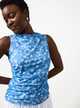 Blue Floral Print Sleeveless Ruched Top 18