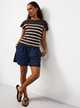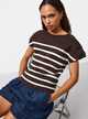 Brown Stripe Shoulder Pad Detail Knitted Top XS