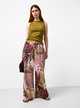 Mid Pink Palm Leaf Print Wide Leg Trousers 10