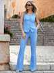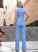 SOSANDAR Pale Blue Scoop Neck Button Front Longline Waistcoat 16