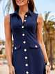 SOSANDAR Navy Blue Gold Button Detail Ponte Dress 10